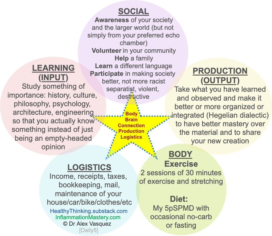 DAILY FIVE: Body, Brain, Action, Connection, Logistics