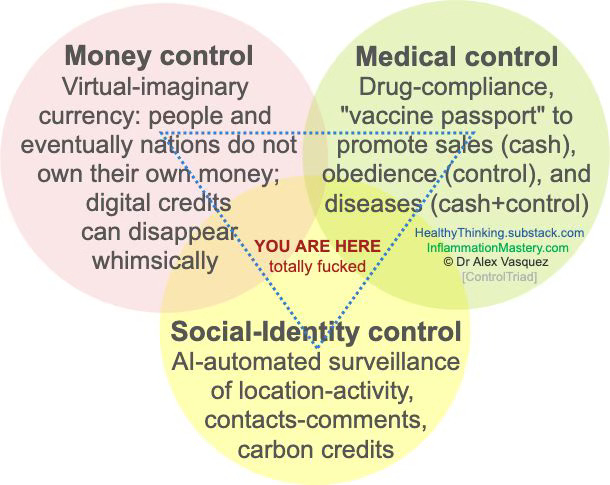 The currently best and most horrible example of politicized-medicine is the global advancement toward merging digital “health passports” with social profiling connected with centralized money control, the combination of which I call the CONTROL TRIAD. We all have to accept that politics influences health outcomes, and anyone who says otherwise is just being immature and ignorant.